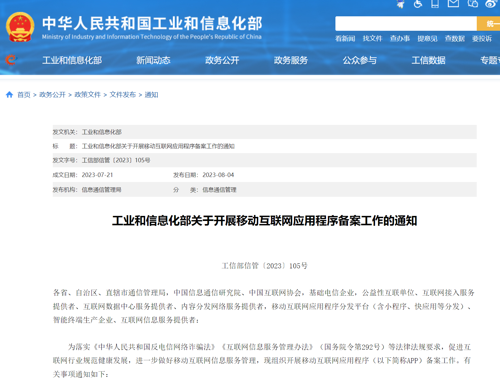 App备案通知